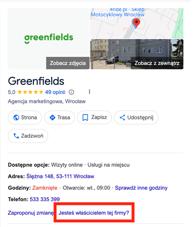 Zgłaszanie prawa do Profilu firmy w Google Maps