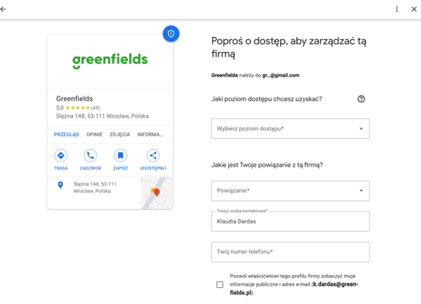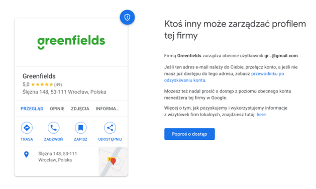 Z kolei jeśli Profil Firmy już istnieje i zarządza nim ktoś inny, np. agencja marketingowa, która zakładała konto, wtedy możesz poprosić o dostęp do niej. Co się dzieje dalej?